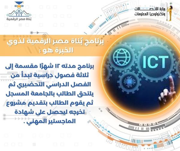 مبادرة ‘بُناة مصر الرقمية’ تقدم برامج دراسية مميزة تتيح فرص رائعة للتخصص في أحدث مجالات الاتصالات وتكنولوجيا المعلومات لخريجي مختلف الكليات.